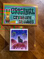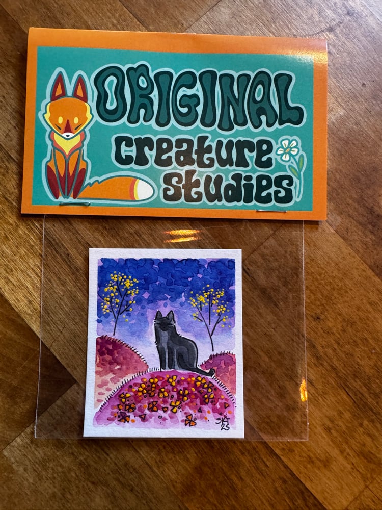 This is a miniature, original painting made with watercolor, ink and whimsy.