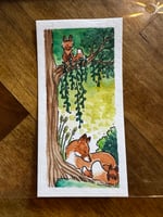 This is a miniature, original painting made with watercolor, ink and whimsy.